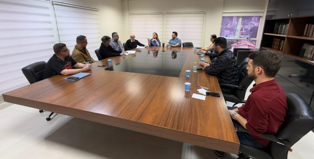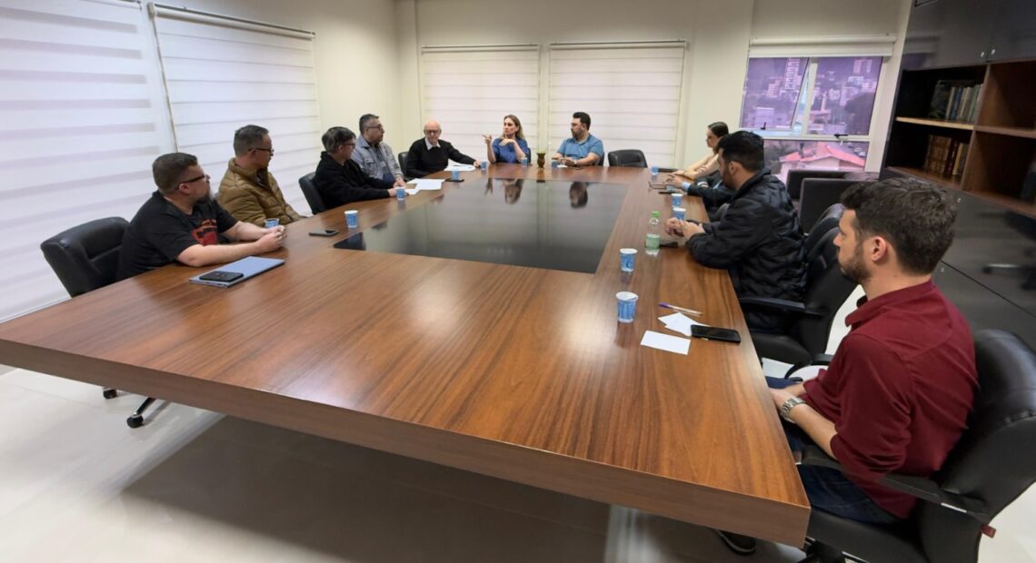 Vereadores e representantes do Conselho Municipal de Trânsito, da Diretoria de Trânsito e da Secretaria de Administração de Joaçaba estiveram reunidos na Câmara de Vereadores nesta segunda-feira (15/09). A reunião ocorreu após a vereadora Rita Weiss (PL), ter feito uma sugestão para que os representantes da área pudessem ocupar a tribuna da Câmara, apresentar as ações que estão sendo realizadas e ouvir as sugestões dos vereadores sobre o tema. Diante da manifestação dos Conselheiros, ao invés do uso da tribuna em sessão ordinária, o grupo optou por uma reunião, que foi então convocada pelo presidente da Câmara, Diego Bairros.