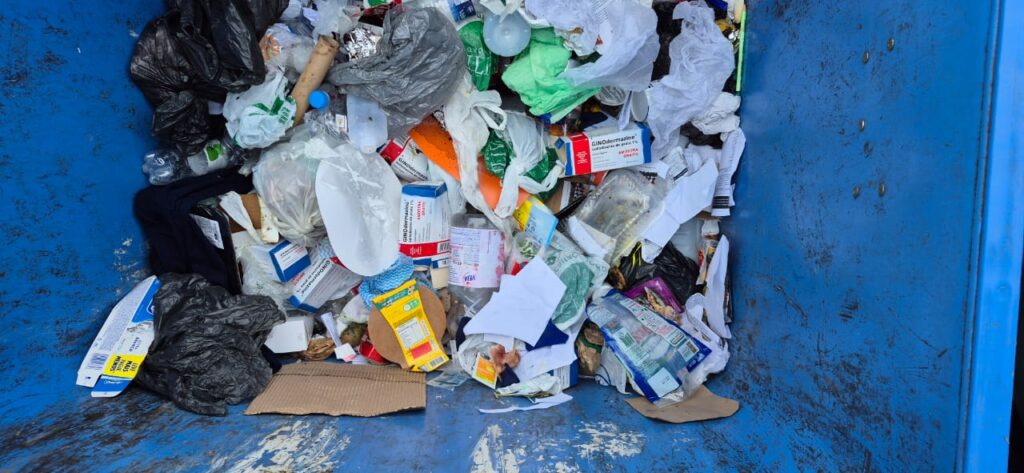 A Secretaria Municipal de Saúde, ao tomar conhecimento do caso por meio da reportagem, acionou imediatamente a Vigilância Sanitária, que se deslocou até o local para averiguar a denúncia. No contêiner azul, destinado ao lixo comum, os fiscais constataram a presença de materiais contaminados, incluindo medicações de aplicação intravenosa e fármacos controlados, cuja comercialização é proibida em farmácias convencionais.