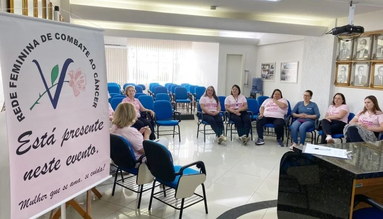 A Câmara de Dirigentes Lojistas (CDL) de Joaçaba realizou na segunda-feira (13) um bate-papo especial sobre saúde feminina, em parceria com a Rede Feminina de Combate ao Câncer (RFCC). O encontro, realizado na sede da entidade, reuniu as colaboradoras da CDL e teve como foco principal a prevenção e o diagnóstico precoce do câncer de mama, reforçando a importância do cuidado com a saúde da mulher. Durante a conversa, as voluntárias da Rede apresentaram o trabalho desenvolvido pela instituição, que há mais de duas décadas atua em Joaçaba e região promovendo ações educativas, campanhas de conscientização e apoio a pacientes em tratamento oncológico.