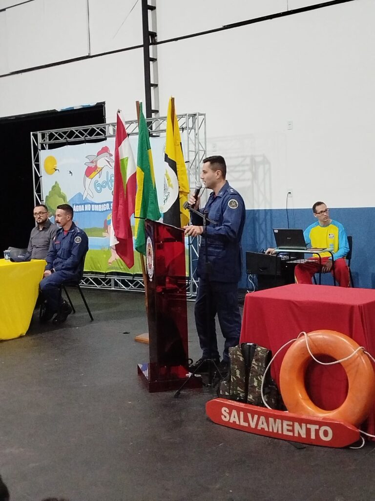 Participaram da formatura além dos oficiais, repesentantes da administração municipal, pais e amigos. O curso foi coordenado pelo 1º Tenente Lucas Zacchi Rausis. O Golfinhos foi instituído no verão de 1998/começo de 1999 no intuito de estreitar seu relacionamento com a comunidade investindo na capacitação das crianças e na construção de uma sociedade com valores e princípios que respeitem à vida e o meio ambiente.