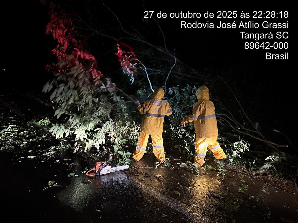 O município de Tangará foi assolado por um violento temporal no começo da noite desta segunda-feira (27). De acordo com moradores, a forte chuva, iniciada por volta das 20h15, foi acompanhada de ventos intensos e queda de granizo, que destelharam e danificaram várias casas. “Foi apavorante”, afirmou uma moradora. Além dos danos a imóveis, a cidade registrou alagamentos e deslizamentos de terra, o que levou equipes da Defesa Civil e das forças de segurança a serem mobilizadas para atendimento das ocorrências e suporte às famílias afetadas.