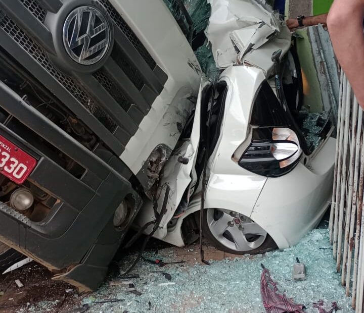 Um grave acidente foi registrado no início da manhã desta quinta-feira (13) na Rua Santa Catarina, em Herval d’Oeste. Um caminhão carregado de frangos perdeu o freio enquanto descia uma ladeira íngreme e acabou atingindo violentamente um automóvel, deixando três pessoas presas nas ferragens.