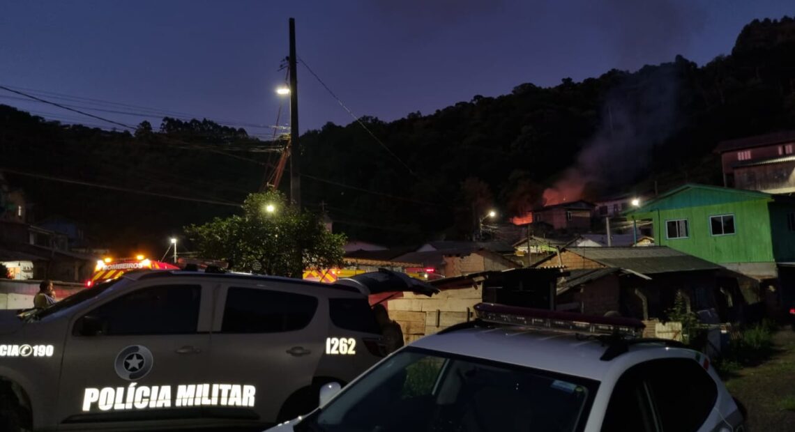 Um incêndio registrado no final da tarde desta segunda-feira (24) mobilizou o Corpo de Bombeiros Militar de Joaçaba e atingiu três residências na Vila Cachoeirinha. A casa onde o fogo teve início, construída em madeira, foi totalmente consumida pelas chamas. Outras duas moradias vizinhas tiveram danos parciais antes da situação ser controlada.