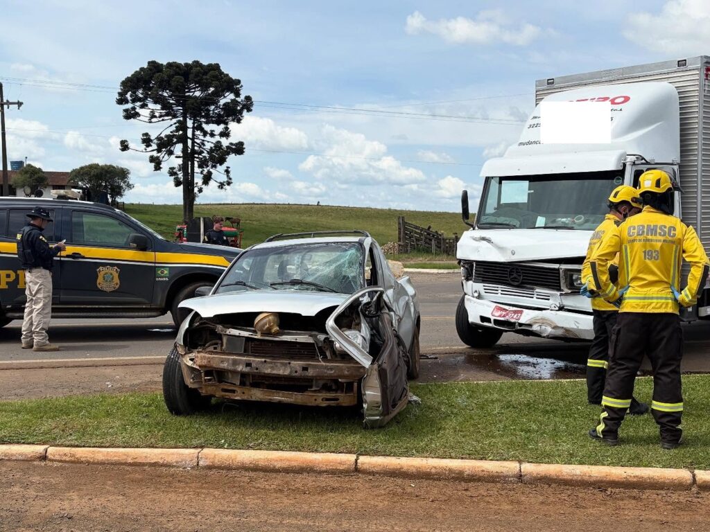 Um idoso de 100 anos morreu na manhã desta quarta-feira (5) após se envolver em um acidente de trânsito em Campos Novos. Ele conduzia uma pick-up Corsa, com placas do município, quando ao tentar atravessar o trevo de acesso na BR-470 acabou cortando a frente de um caminhão Mercedes-Benz 710, com placas de Lages.