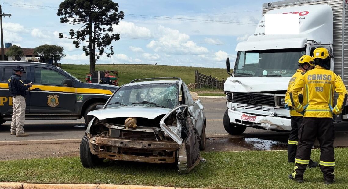 Um idoso de 100 anos morreu na manhã desta quarta-feira (5) após se envolver em um acidente de trânsito em Campos Novos. Ele conduzia uma pick-up Corsa, com placas do município, quando ao tentar atravessar o trevo de acesso na BR-470 acabou cortando a frente de um caminhão Mercedes-Benz 710, com placas de Lages.