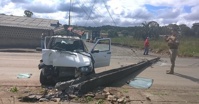 Veículo derruba poste em Irani