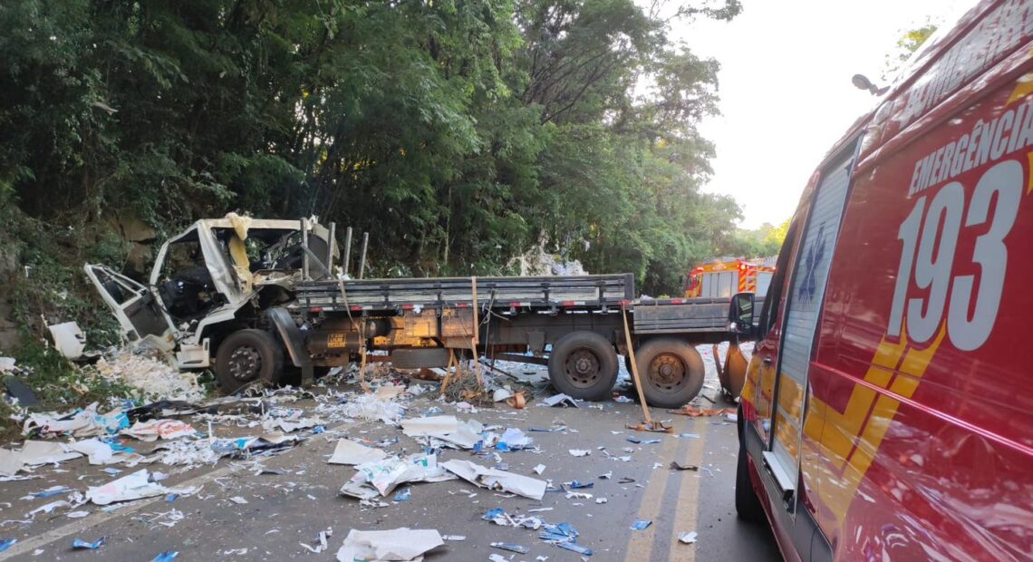 Quando os bombeiros chegaram ao local, encontraram a cabine do caminhão totalmente destruída, tamanha a violência da saída de pista. Mesmo assim, o condutor de 36 anos, conseguiu sair do veículo por conta própria e estava sentado no acostamento.