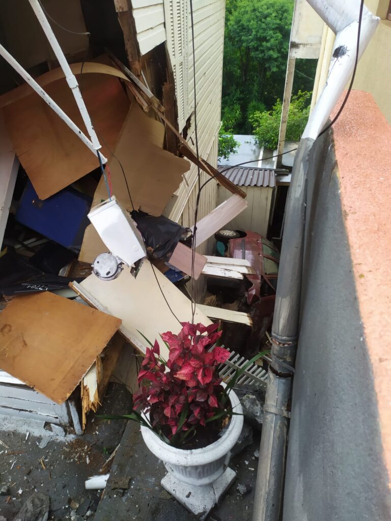 O impacto causou grandes danos tanto à residência quanto ao veículo. No momento do acidente, dois moradores dormiam em um quarto localizado logo abaixo da área atingida, mas, apesar do susto, ninguém na casa ficou ferido.