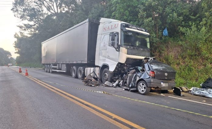 De acordo com a Polícia Militar Rodoviária, o acidente envolveu um automóvel VW/Gol, com placas de Iomerê, e uma carreta de Joaçaba, que tracionava um semirreboque. O condutor do Gol, um homem ainda não identificado oficialmente, morreu no local em decorrência da gravidade dos ferimentos.