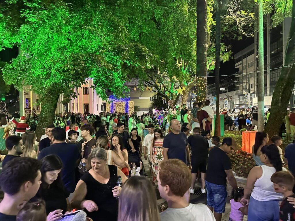 Além do movimento nas lojas, o clima natalino ganha ainda mais destaque na praça em frente à Prefeitura, onde todas as noites estão sendo realizadas atrações voltadas para as famílias, com apresentações culturais e atividades especiais. Um dos pontos mais visitados é a Casinha do Papai Noel, que funciona diariamente das 19h às 22h, encantando crianças e adultos e contribuindo para tornar o centro da cidade um espaço de lazer, convivência e celebração do espírito natalino.