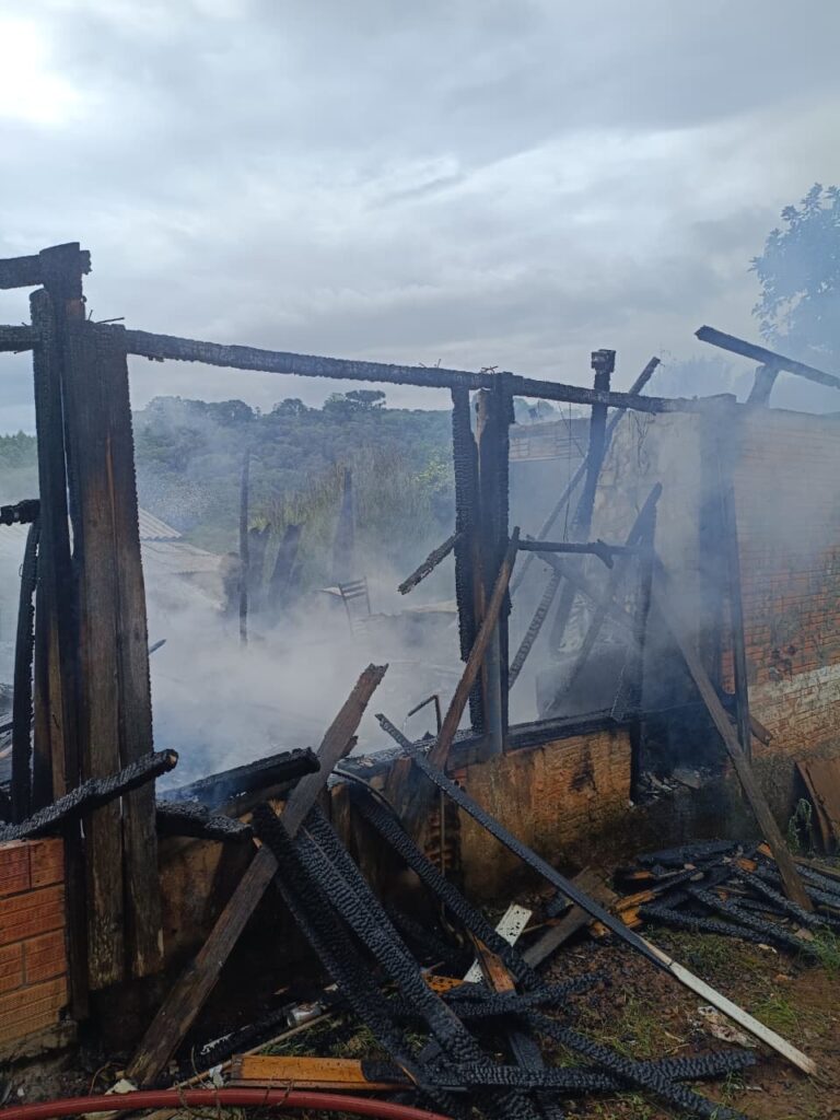Uma casa de madeira foi completamente destruída por um incêndio na tarde desta segunda-feira, dia 23, em Catanduvas.