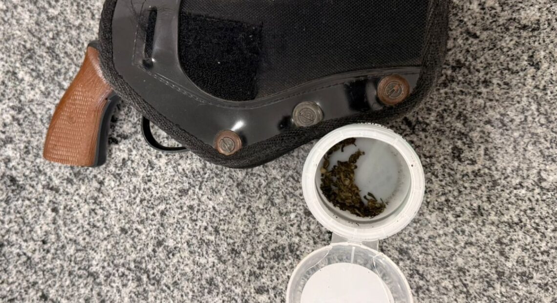 Diante da gravidade da situação, os policiais deram voz de prisão ao agressor. Durante a abordagem, foram encontrados no interior da residência uma substância semelhante à maconha, vestígios indicativos de uso de cocaína e um simulacro de arma de fogo, todos em local de fácil visualização.