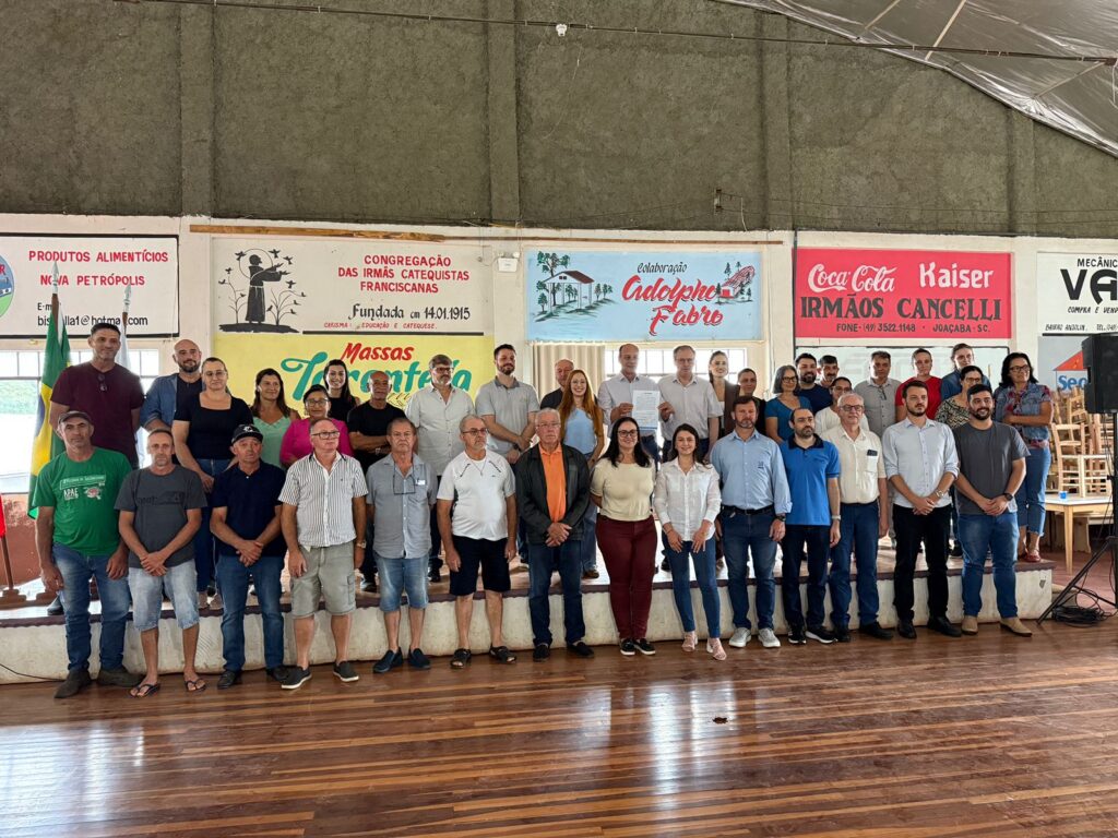 A Administração Municipal de Joaçaba fez um importante investimento no interior do município. Na tarde desta terça-feira, 03/02, no Pavilhão da Comunidade de Nova Petrópolis, foi realizada a assinatura da ordem de serviço para a execução das obras de pavimentação asfáltica, drenagem pluvial e implantação de rede de esgotamento sanitário em quatro ruas do Distrito de Nova Petrópolis.
