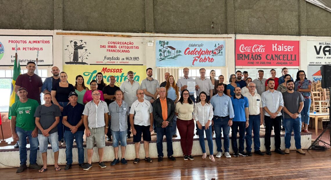 A Administração Municipal de Joaçaba fez um importante investimento no interior do município. Na tarde desta terça-feira, 03/02, no Pavilhão da Comunidade de Nova Petrópolis, foi realizada a assinatura da ordem de serviço para a execução das obras de pavimentação asfáltica, drenagem pluvial e implantação de rede de esgotamento sanitário em quatro ruas do Distrito de Nova Petrópolis.