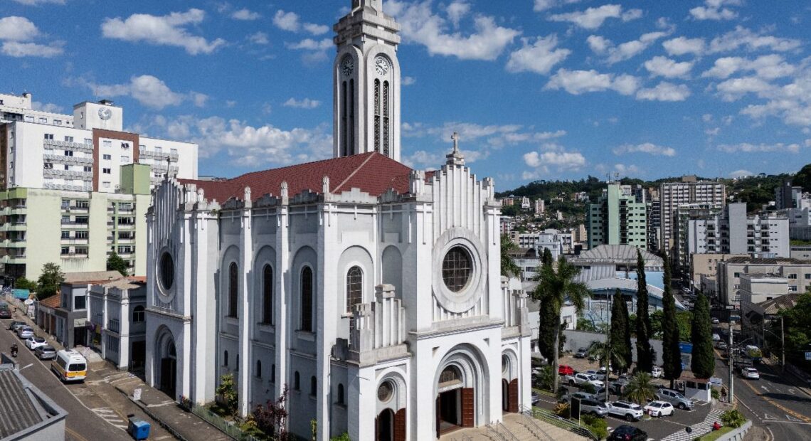 As obras de revitalização externa do Santuário Catedral Santa Teresinha do Menino Jesus seguem em Joaçaba. Nestes dias, foi intensificada a retirada da tinta que atualmente cobre a estrutura com o objetivo de se avançar na etapa posterior onde serão revitalizados os locais com infiltração e necessidades estruturais.