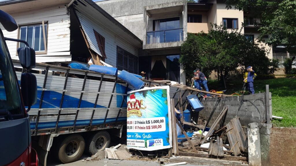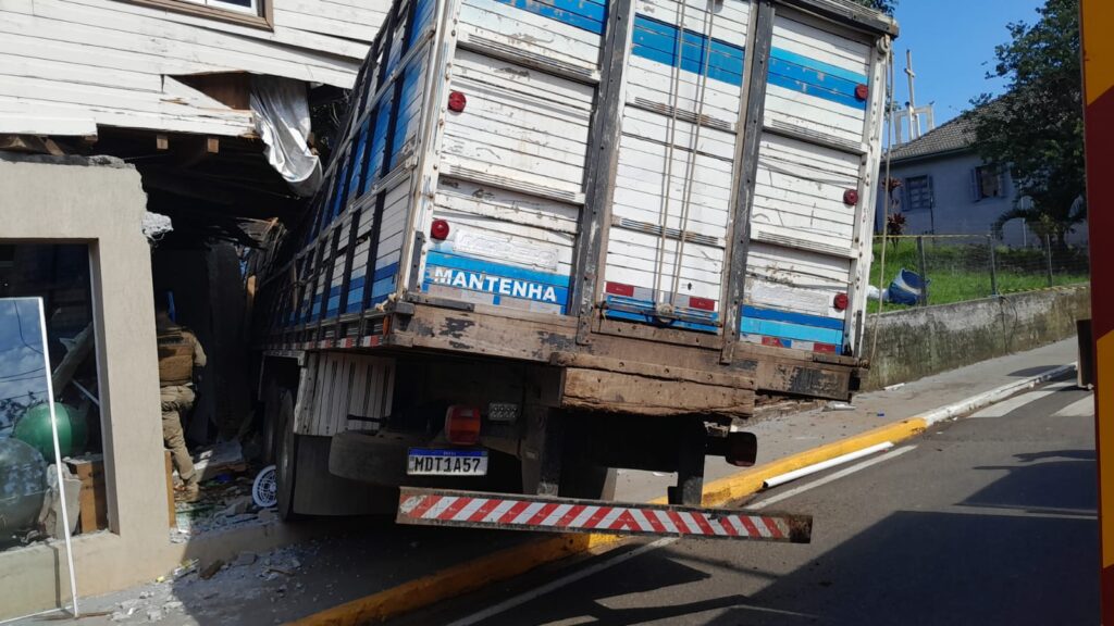 Um acidente envolvendo um caminhão boiadeiro foi registrado na manhã desta sexta-feira, 06/03, na entrada do município de Ibicaré. A ocorrência foi por volta das 9h, na Avenida Nereu Ramos, no Centro da cidade. De acordo com as primeiras informações, um caminhão carregado de bois descia a SC-453, no sentido Tangará–Ibicaré, quando o motorista perdeu o controle da direção e o veículo acabou colidindo com um prédio de dois pavimentos.