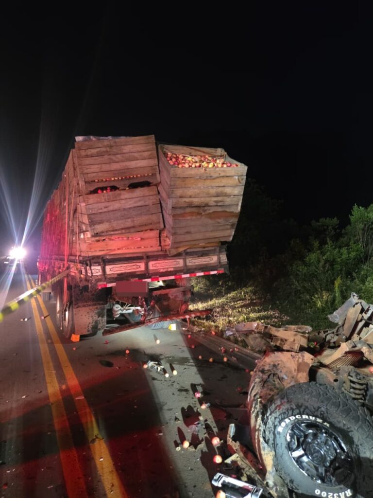 Após o atendimento, os bombeiros realizaram a limpeza da pista, retiraram a carga de maçãs espalhada e adotaram medidas para evitar novos acidentes no trecho.