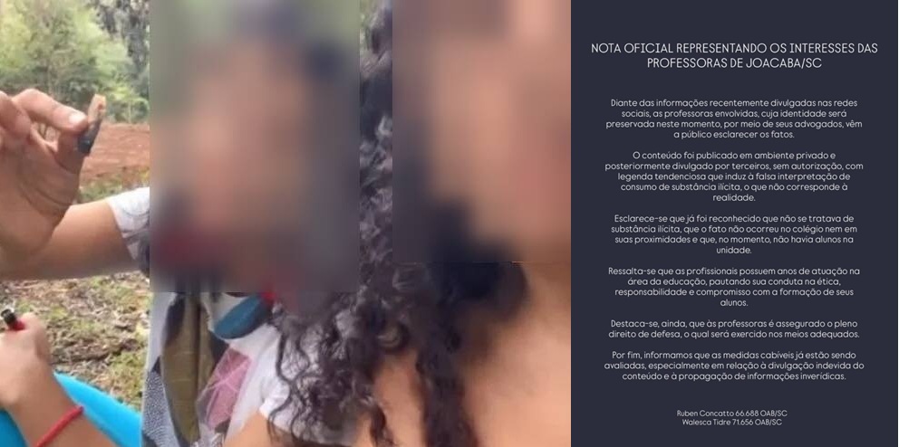 Representadas pelos advogados Ruben Concatto e Walesca Tidre, as docentes alegam que as imagens foram gravadas em um ambiente privado e divulgadas sem autorização por terceiros. Segundo a nota, a legenda que acompanhou o conteúdo nas redes sociais teria induzido a uma interpretação equivocada, sugerindo o consumo de substância ilícita — o que, conforme a defesa, já foi descartado.
