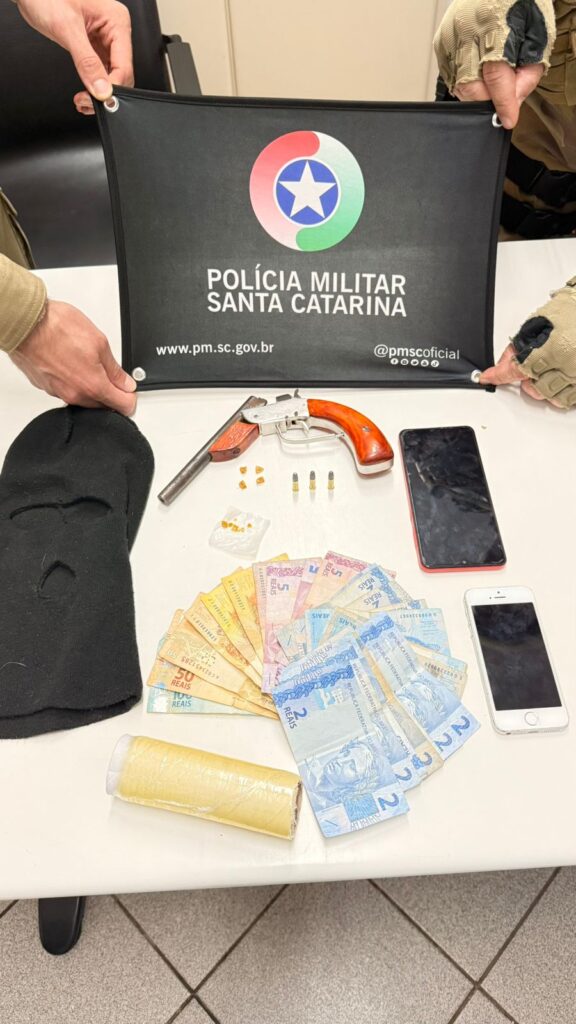 Durante a revista pessoal, foram encontradas duas munições calibre .22 e uma quantia em dinheiro em notas fracionadas. Nas buscas realizadas no imóvel, os policiais apreenderam ainda quatro pedras de crack fracionadas, um aparelho celular da marca Samsung, um iPhone, uma balaclava preta e um rolo de plástico filme — material comumente utilizado para embalar entorpecentes.