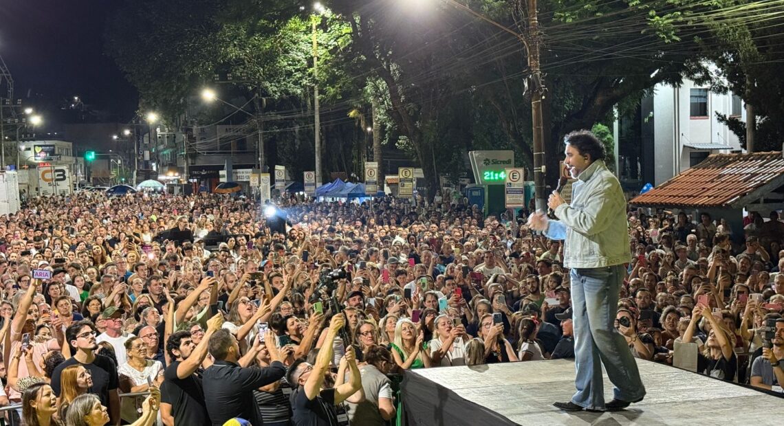 A Avenida XV de Novembro, em Joaçaba, se transformou na noite desta sexta-feira (20) em um grande palco de fé e emoção. Mais de 6 mil pessoas cantaram e se emocionaram com o show do Padre Fábio de Melo.