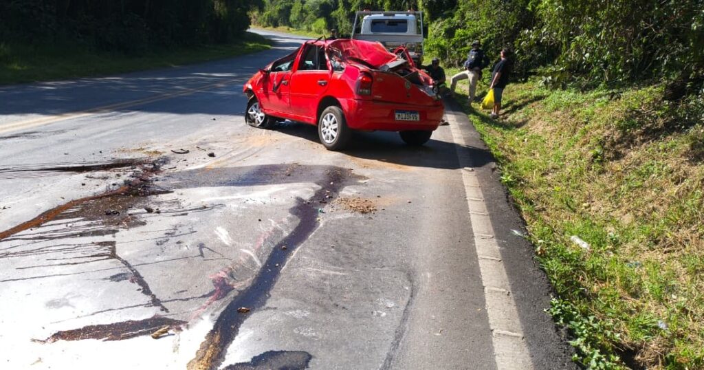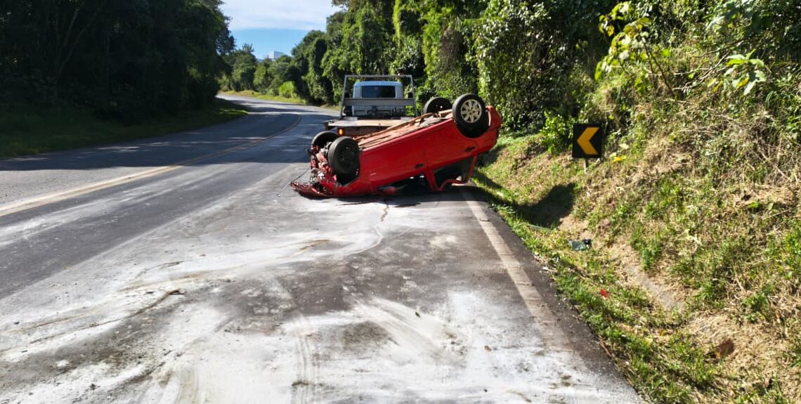 No local, os socorristas constataram que um VW/Gol havia saído da pista e capotado sobre a rodovia. Conforme informações apuradas, o motorista, de 26 anos, estava sozinho no veículo e seguia no sentido Erval Velho quando perdeu o controle da direção. O carro saiu da pista, colidiu contra pedras às margens da rodovia e acabou capotando.