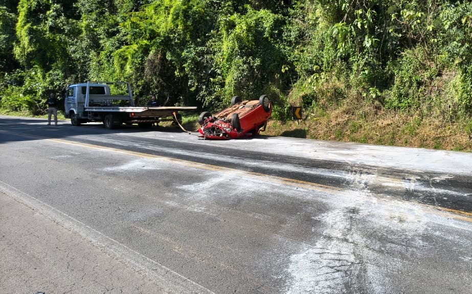 Saída de pista seguida de capotamento é registrada na BR-282, em Herval d’Oeste