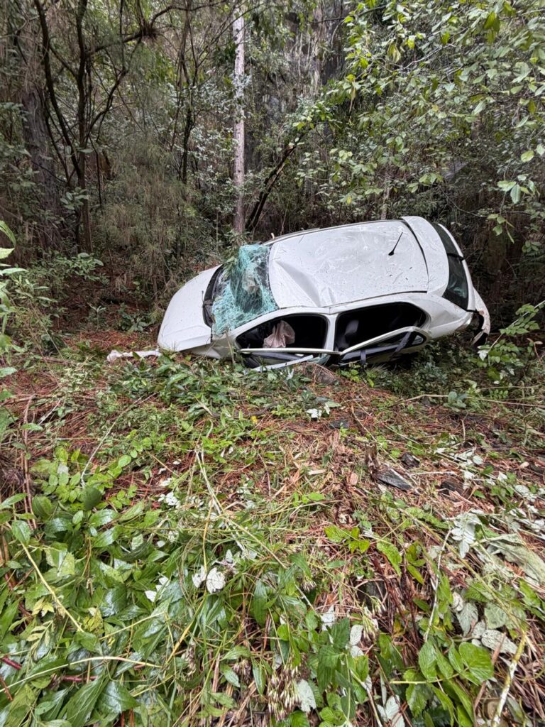 De acordo com as informações, o veículo — um VW Gol branco — despencou de uma altura estimada entre 20 e 30 metros. O acesso ao local foi difícil, já que a estrada é pouco utilizada e a chuva no momento do acidente dificultou ainda mais a chegada das equipes de resgate.
