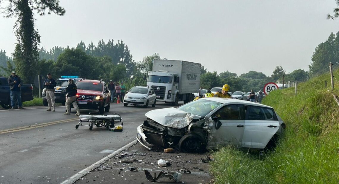 Colisão entre dois veículos deixa feridos e provoca congestionamento na BR-282 em Joaçaba