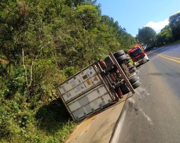 Bombeiros de Catanduvas, atenderam a um acidente de trânsito por volta das 16h20 desta terça-feira, 09, na curva da Madezatti – BR 282 em Vargem Bonita. Ao chegar no local, a guarnição deparou-se com uma carreta Scania/R 440 com placas de Navegantes/SC, capotada no lado esquerdo da rodovia. Dentro da cabine encontrava-se o condutor de […]
