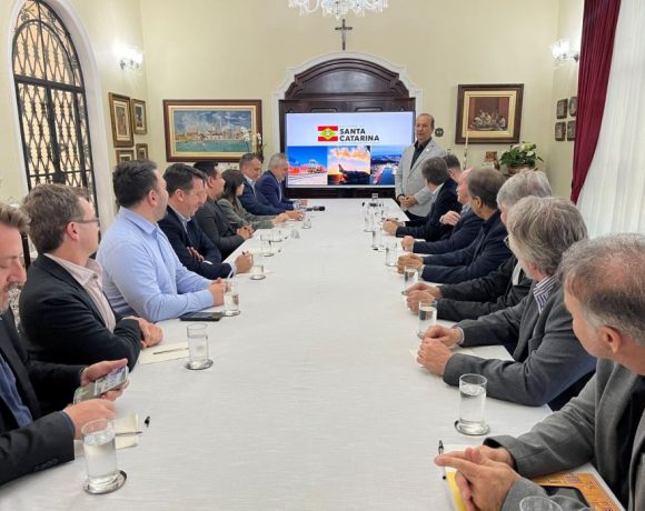 O governador Jorginho Mello e secretários de Estado participaram do painel A Nova Economia Catarinense, no Centro de Inovação Inovale, nesta quinta-feira, 23, para falar das realizações do Governo do Estado e das ações previstas para a região. Eles foram recepcionados pelo presidente da Associação Comercial e Industrial do Oeste Catarinense (Acioc), Fábio Lazzarotti e […]