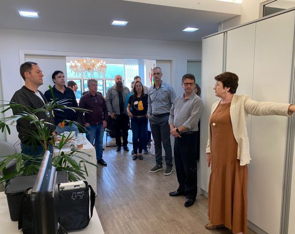 A empresária Maria Claudete Becker, presidente da CDL/Joaçaba, o vice-presidente Marcelo Risson e o diretor do 11º Distrito, Orlando Bucco, recepcionaram o presidente da Federação das Câmaras de Dirigentes Lojistas de Santa Catarina – FCDL/SC, Onildo Dalbosco Júnior, e toda diretoria da FCDL/SC na manhã deste sábado, 06. “Sejam sempre bem-vindos. Ficamos muito felizes em