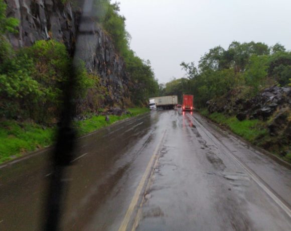 A Polícia Rodoviária Federal (PRF) atendeu no início da manhã desta sexta-feira um acidente de trânsito na BR-282 em Erval Velho. Uma carreta contêiner colidiu contra um paredão de rochas. Chovia na hora do acidente e o motorista não se machucou. A carreta fez um “L” e interdiou a pista por alguns momentos.