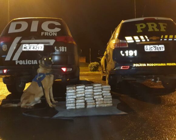 Policiais rodoviários federais e polícias civis aprenderam na noite desta segunda-feira, dia 21, na BR-158 em Cunha Porã, 44,3 quilos de cocaína. A droga está avaliada em R$ 1,8 milhão, informou a Polícia Rodoviária Federal (PRF). O entorpecente foi encontrado em um uma Volkswagen Parati, com placas de Guaíra (PR). O cão Bili, do canil […]