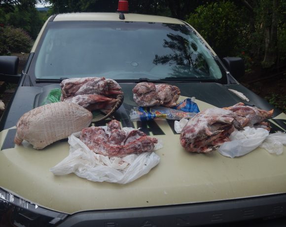 Após denúncia recebida de que em uma residência na comunidade de Bom Jesus, município de Abdon Batista haveria uma ”grande janta” na última sexta-feira 15/02/2019, a Polícia Militar Ambiental se deslocou até o local. A autoridade policial encontrou na referida residência, diversas carcaças de animais silvestres, entre elas tatu-galinha, paca, jacus, pombas silvestres entre