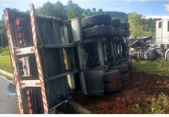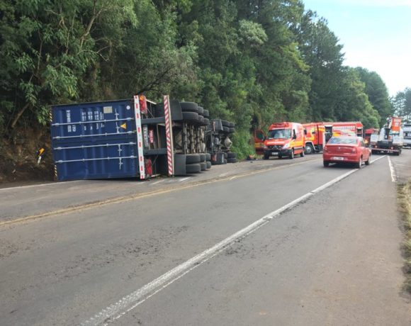 Uma carreta com placas de Imbituba (SC) tombou por volta das 17h30 desta quinta-feira (28) na SC-355, que liga os municípios de Jaborá a Concórdia. O fato ocorreu no trevo de acesso a cidade de Presidente Castelo Branco. Segundo as informações, o veículo estava subindo quando o condutor teria errado a manobra de marcha, sendo […]