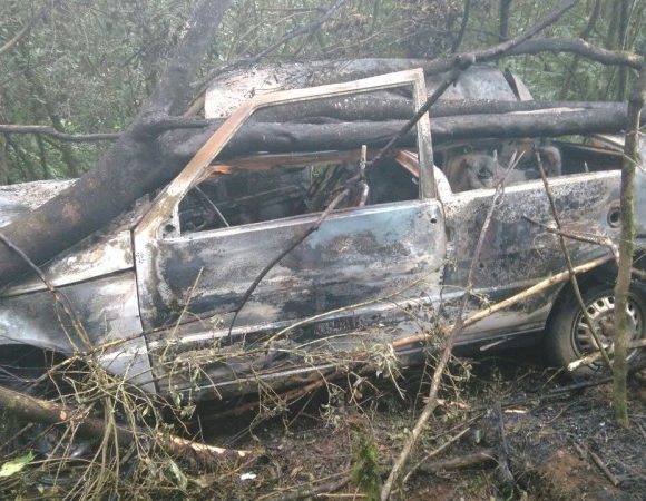Um Fiat Uno com placas de Machadinho/RS pegou fogo após sair da pista por volta das 15h30min desta sexta-feira (12) na BR-470, próximo a Britasul, em Campos Novos. O carro era conduzido por um homem que se evadiu do local, deixando a companheira no mato com queimaduras nas pernas. O Corpo de Bombeiros foi acionado, […]