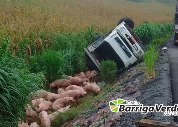 Um caminhão carregado de suínos acabou tombando nas margens da SC-453, entre os municípios de Ibicaré e Tangará, no início da manhã desta sexta-feira, dia 24. O acidente provocou a morte de dezenas de porcos que estavam na carroceria do veículo. Segundo informações de um motorista que passou pelo local logo após o acidente, o […]