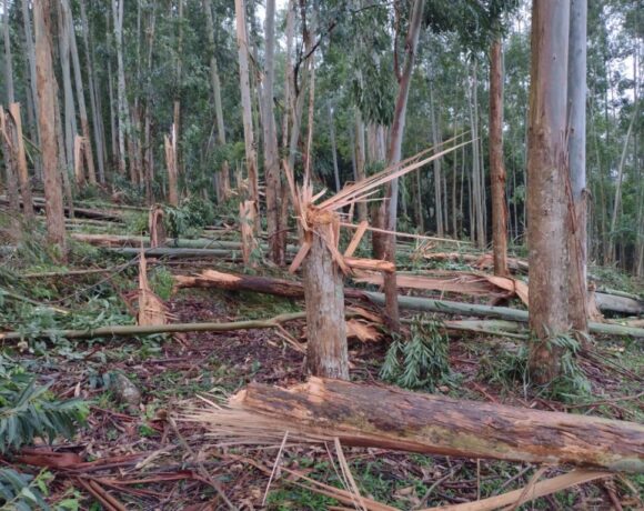 Os fortes ventos registrados na noite de segunda-feira provocaram vários estragos, além da interrupção no fornecimento de energia elétrica em diversas comunidades no município de Seara. Em Rui Barbosa houve destelhamento de um chiqueiro. Árvores foram derrubadas em Celso Ramos. Entre Sagrado Coração e Ariranhazinha dezenas de eucaliptos foram retorcidos e derrubados pelo