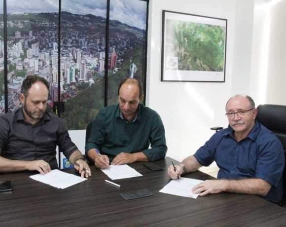 Foi assinada na tarde desta sexta-feira (25), mais uma ordem de serviço para pavimentação de três ruas do município de Joaçaba. Estiveram presentes na solenidade, o prefeito Dioclésio Ragnini, o vice-prefeito Jucelino Ferraz, secretários municipais, vereadores, membros da comunidade, representante da AMMOC e o representante da empresa Viga Pavimentações e Obras Ltda, que