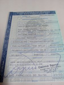 Documento do veículo usado para os roubos