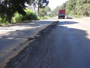 Imagem da rodovia SC 350, conforme a Federação o asfalto vem se deteriorando pela falta de manutenção
