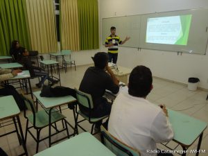 Luiz Guilherme Meneses dos Santos, aluno de Engenharia de Controle e Automação, durante apresentação de seu trabalho