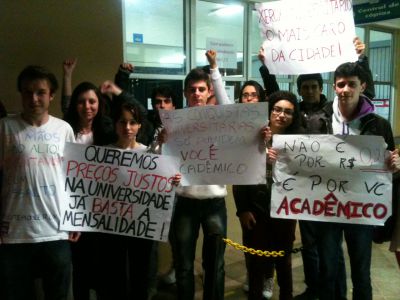 04/08/2014 Acadêmicos do campus de Joaçaba da Unoesc realizaram na noite desta segunda-feira (04) mais uma manifestação pública questionando os valores que estão sendo praticados na Central de Cópias. As reclamações surgiram a partir do mês de julho quando a empresa que administra o setor elevou a cópia de R$ [Leia Mais]
