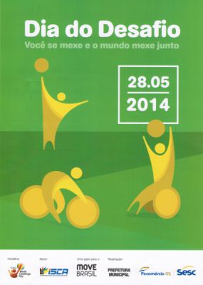 26/05/2014 A cidade de Joaçaba já está se preparando para o Dia do Desafio 2014, evento mundial que incentiva a prática regular de atividades físicas. A proposta é que as pessoas interrompam suas atividades rotineiras para praticar qualquer tipo de atividade física por, no mínimo, 15 minutos consecutivos. A partir disso, [Leia Mais]