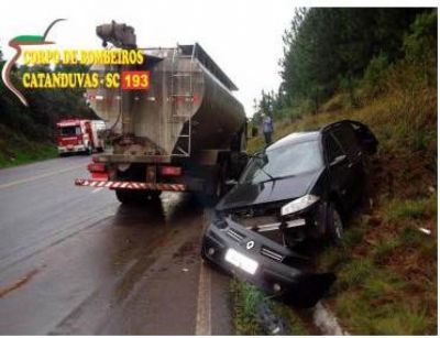 20/06/2013 Uma colisão frontal por volta das 08h30 desta quarta-feira (19) foi registrada na BR-282 em Catanduvas. O acidente aconteceu nas proximidades da ervateira Catanduvas e envolveu um caminhão Volvo VM-270 carregado de ração e um veículo Renault Megane. O motorista do carro sofreu escoriações no rosto e sentia dores [Leia Mais]