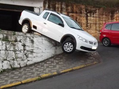 28/03/2013 Uma Saveiro com placas de Joaçaba ficou suspensa em uma bifurcação no centro de Joaçaba no final da tarde desta quarta-feira (27). O fato inusitado aconteceu por volta das 18h na rua Frei Rogério. O motorista, de iniciais S.V.S., de 88 anos, acabou fazendo uma manobra equivocada que ocasionou [Leia Mais]