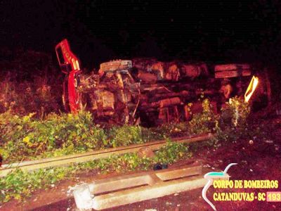 21/03/2013 Um caminhão carregado com porcos tombou na noite desta quarta-feira (20) na BR-282 no município de Catanduvas. O acidente aconteceu por volta das 20h30 na cabeceira da ponte do Rio Jacutinga. Chovia na hora do acidente. De acordo com relatório do Corpo de Bombeiros foi uma saída de pista [Leia Mais]