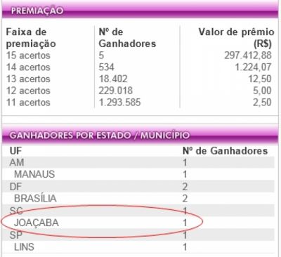 21/02/2013 Um apostador de Joaçaba da Lotofácil acordou nesta quinta-feira (21) com R$ 297 mil na conta bancária. A loteria da Caixa Econômica Federal, concurso 870, sorteado em Vilha Velha, teve 5 acertadores no prêmio principal (15 números), sendo um de Joaçaba, outro de Brasília, um São Paulo e um [Leia Mais]