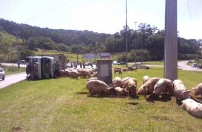 17/10/2012 Um acidente foi registrado na manhã desta quarta-feira (17) na SC-303, no trevo de acesso a Rio das Antas. Caminhão com placas MDS-2854 de Catanduvas trafegava no sentido Rio das Antas a Videira carregado de suínos, quando o motorista acabou perdendo do veículo que tombou na pista. A carga [Leia Mais]