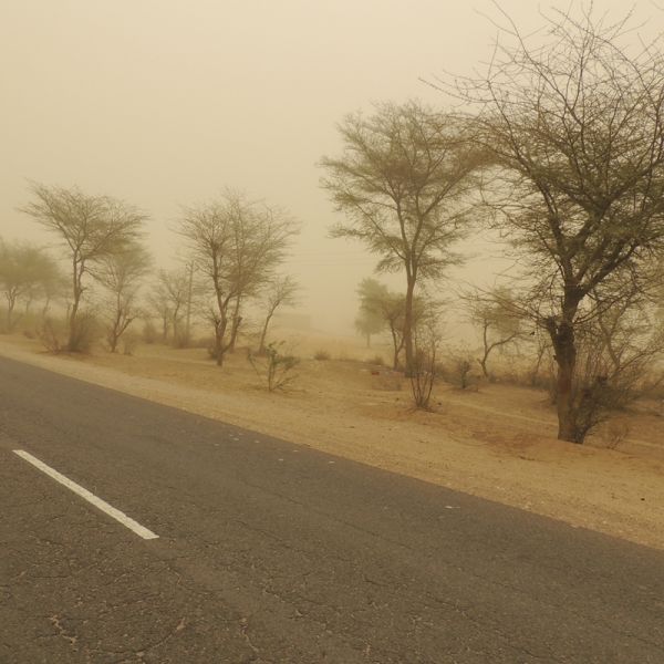 "Atravessei o deserto de Rajasthan dias 8 e 9 de junho perfazendo quase 400 km e enfrentantado uma tempestade de areia, uma novidade pra mim e pra muitos ciclistas no Brasil. Tive várias queimaduras nas pernas e rosto mas tive que fazer uma kilometragem a mais para chegar a uma cidade e me refazer do cansaço e das queimaduras. Estou agora na cidade de Suratgarh, pertto do estado do Punchab, já ao norte da Índia, perfazendo um total de 1.643 de pedaladas pela Índia"
